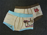 ファイヤー通り沿いにオフィスを構える同社は、従業員数38人、平均年齢が約22歳(2006年3月現在)の若い会社で、中には10代のデザイナーもいるという。「『クルーズ・アンダーウエア』の立ち上げは、109-2に出店が決まった昨秋。自社デザイナーのほか外部で活躍するフリーのデザイナーもメンバーに加え、ブランドカラーやコンセプトの打ち出し方を固めていった」と話すのは、自身も21歳という年齢で、複数のブランドの企画・管理を担当する瀬谷さん。「誰かに見せたいパンツ=見せパン」をコンセプトに、「作り手側もユーザーも楽しめるもの」という意味を込めた「楽園」というテーマが固まったのは今年に入ってからだったという。オリジナル商品は立ち上げ時で、色違い含め全26型。プリントものが中心で、「ハワイ・カリブ」「ジャングル・サファリ」「L.A.」「ルート66」などテーマ別の商品と、迷彩柄など「売れ筋」の商品がある。ほかにも、パステルトーンのリブが付いていたり、Tシャツでも使われているようなプリントがあしらわれていたりと、カジュアルな商品を揃えているのが特徴だ。サイズ展開は、女性にも対応するSサイズとMサイズの2展開で、価格は、3千円台〜4千円台が中心となっている。