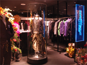 2004年秋にデビューした「ミダス」は、「ロック」「ミリタリー」をベースに、今シーズンはラグジュアリー感、チープ感をミックスしたスタイルを打ち出している。商品は、「早ければ企画段階から約1カ月で上がってくる」(奥村さん)というように、その時々の流行に合わせた柔軟な回転を行うほか、ジーンズの中心価格が1万円台前後という値頃感のあるものを中心に揃えている。「いいものを高く作るのは簡単。若い人に向けて、いかにいいものを安く作るか、ということを意識して作っている」(奥村さん)。「流行に敏感な客層」のニーズをできるだけ早くキャッチし、リーズナブルな価格帯で提供することが購買意欲を高めるポイントだという。ショップでは、限定商品として、ラインストーンや箔プリントを使うなどしたアイテムも取り扱う。