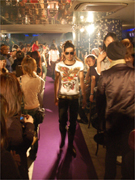 3月30日、神南のクラブで「渋谷系メンズファッション」をテーマに掲げる合同ファッションショーが開かれた。会場に設けられた特設ランウエイには、箔プリントやラインストーン、ダメージ加工などをあしらった「クール」「セクシー」「ゴージャス」系のアイテムが続々と登場し、集まった若者を盛り上げる。いずれもタイトなシルエットで、原宿・渋谷の「今」を体現したスタイルだ。