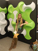 ブース内の壁面いっぱいに白とグリーンのプラスチックパーツを敷き詰め、巨大な「いす」を出現させたプエルトリコ出身の女性デザイナー、Maruja Fuentesさん。凹凸のある流線型の2つのパーツは、リサイクルプラスチックで、組み合わせることであらゆる公共環境に適応するという。いすはすでに、プエルトリコ国内のバス停にも設置済み。今後は注文があれば白、グリーン以外のカラーカスタムも受け付け、日本でも商品をアピールしていきたい考えだ。