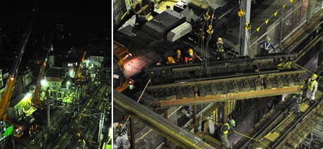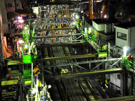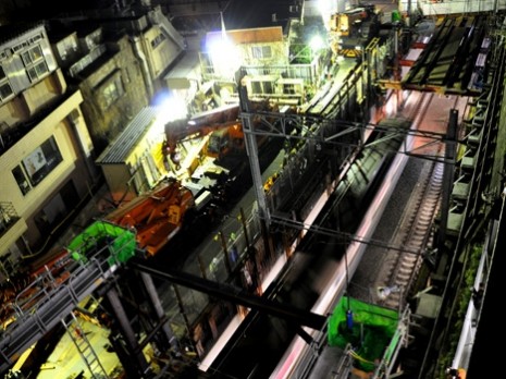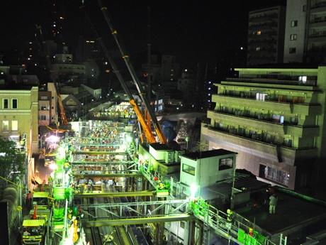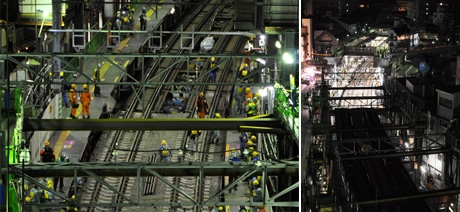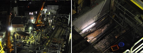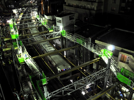 工事内容は、代官山駅ホームなどのレール高さを下げる「降下区間」、今まで使っていたレールの切断や仮設ホームを撤去する「撤去区間」、クレーン作業が困難な場所ではジャッキを用いて既存の地上線を持ち上げる「扛上区間」など計6ブロックに分業化され効率的に進められた。