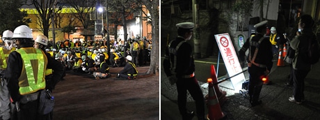*22時00分ごろ、現場から10分ほど離れた「恵比寿公園」(渋谷区恵比寿1)に工事作業員が集合し、各作業担当毎に説明が行われる。