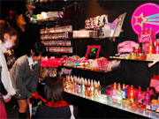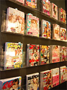 サンプリングコーナーは、TBSの情報番組「ランク王国」とのコラボレート空間。タワー状の什器には、人気コスメやハドソンの万歩計など単価も高い限定数のプレミアムアイテムをはじめ、ジュースなどの飲料やサプリメント、シャンプー類、香水など常時30品目が並び、アンケートに答えれば好きなもの3種類が無料で選べる仕組み。コーナーの壁面には、番組内で紹介されたランキング結果によるコミックベスト10などのサンプルも並び、こちらは無料閲覧や試食なども可能。「ティーンは新しいものが好き。サンプルも楽しみながら真剣に選んでいく」(オゾンネットワークSBYプロジェクトチーム宣伝・広報担当の柴垣麻衣子さん)という。