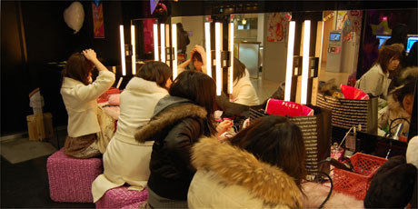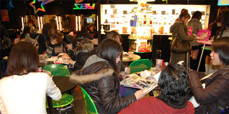 オゾンネットワークが昨年12月に行った調査によると、冬休みの集客効果も影響したせいか、同月の来店客数は1日平均でおよそ500人。うち中学から専門、大学に至るまでの「学生」が約8割を占め、1月に入ってからも、特に混み合う平日の夕方と休日を中心に、客足は途絶えない。買い物やお茶、メーク直しと、お金をかけず多様なニーズを満たせる「お得」な空間に、ティーンの口コミも広まっている。