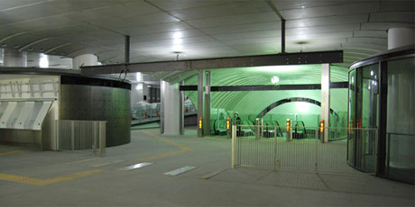 クーラーやモーターなど大きな熱力を持ち駅に入ってくる電車に対し、いくつもの冷房を使い、こもった熱を冷やしていたのが従来の地下駅の換気構造。今回の駅では、あらかじめ地上と地下空間をつなぐ巨大な吹き抜け構造を採用したため、暖かい空気は上昇し、冷たい空気は下降するという自然の対流現象が起き、従来の「悪循環」を取り払うかたちに。機械に頼らないこの自然換気システムで、年間約1,000トンのCO2削減効果があるという。