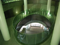 新渋谷駅のホームは、明治通りの真下、田園都市線、半蔵門線のホームよりも深い地下5階。うち銀座線から池袋方面に約10メートルのところがホームの「中心」で、それを境に横浜方面が東急電鉄の事業範囲。ここに存在するのが、すでにさまざまなメディアで取り上げられ注目される、「世界的」建築家・安藤忠雄さんが構想を手がけた「地宙船」。