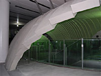 地宙船は、駅構内の「冷房装置」としても機能する。換気ダクトから冷風を流して空気を冷やす従来の地下駅に対し、自然換気システムを導入したため換気ダクトを装備しない同駅では、「放射冷房」という新システムを導入。放射冷房は、暖かい方から冷たい方向に流れる熱の性質に沿い、壁面などを冷やすことで体温が奪われる際に感じる寒さを利用するもの。鍾乳洞や山道のトンネルなどに入ったときに「ヒヤッ」とする感覚も同様の効果から起きる現象だ。