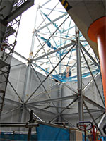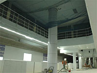 この巨大な地宙船は今年6月の副都心線開業時にお目見えすることになるが、駅から横浜方面に延びる線路は、当然のことながら封鎖されたまま。中央の吹き抜けから見下ろせるホームにも、同時点では電車は走らず、開業時は一部仮設のホームとして稼働することになるという。ホームと改札口の間にある「地下4階」フロアも当面は「換気用」の空間として使われ、乗客は足を踏み入れることができない。「先行開業」の未完成部分が見られるのも、この駅の特徴だ。