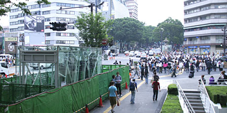 原宿「神宮前」交差点付近でも工事が進む。若年層の取り込みは一歩リード?
