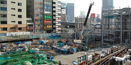 今後の事業計画の「要」として東急電鉄も力を注ぐ渋谷駅周辺の再開発事業。2003年に閉館した駅東口の旧東急文化会館跡地では現在、副都心線との接続口となる新渋谷駅の建設工事が終盤を迎え、新駅の上には今後、地上33階建ての複合高層ビルの建設が控える。