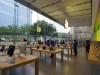 店内には、インターネットに接続されたノートパソコンやiPad、iPhoneなど同社商品350台を配置。1階には、それぞれのデモ機を用意し来店客が試せるようにしている。地下1階のワークショップを開いたり、パーソナルセットアップなどの無料サービスを提供するのスペースは「国内最大」の規模になる。製品に関する相談や修理を受け付ける「ジーニアスバー」は、国内で初めて来店客がテーブルのどこにでも座れるようにした。同店には125人のスタッフが勤める。