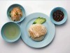 「カオ(=ご飯)マン(=油)ガイ(=鶏肉)」は鶏肉をゆでただしスープで炊いたご飯に、ゆでた鶏肉とソースをかける料理。同店は1960年にタイ・プラトゥーナムで創業し、今年54年目を迎える老舗。従業員がピンクのユニホームを着ていることから、「ピンクのカオマンガイ屋」の名で知られている。