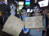警官やピエロ、くまのプーさんなどさまざまな仮装をしていたのは美容専門学校の学生20人ほどの団体。早稲田大学商学部2年の鈴木将司さん、浅沼佑汰さん、穂永隆介さんの3人は、化粧品を使い自分たちで骸骨メークを施しながら「仮装撲滅」「脱ハロウィーン」と書いた段ボールを手に、「(そうなりきれない人の)パラドックスやジレンマ」を表現したという。