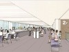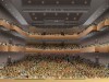 新公会堂は公園通り沿いに建設予定。フロア構成は地下2階〜地上4階の6フロア。地階は楽屋や倉庫、駐車場のほか、庁舎とつながる地下2階には防災備蓄庫を配置。1階エントランスロビーは広さを確保し開放的な空間にし、2階に舞台(ホール)を設置。ホールは2000席(2階〜4階)ほどを予定し、音楽や式典など多様な演目に対応可能な舞台構成にする。