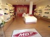 対面販売こだわり、レクチャーに20〜40分かけていることから、大通りではなく「落ち着いた」エリアに出店した。店舗面積はバックヤード含め約23坪。店舗デザインは世界共通で、赤と白を基調に、曲線を重視した什器を配置。店舗奥の壁面や什器には靴のかかとに備えている「MBTセンサー」をかたどった模様のメタルを配置した。