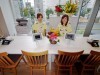 コアターゲット層は20代後半〜30代前半。近年ハワイ発スイーツ・グルメ店が多く出店している表参道・原宿エリアに近いこともあり、同エリアへ出店。店舗面積は55坪。席数は67席を用意。「ラニカイビーチ」をコンセプトにした店内は、砂浜の白、ビーチのブルーを基調に、「明るく穏やかな雰囲気」を演出。「ハワイらしいナチュラルなイメージ」として木の要素も取り入れ、ハワイの画家ヘザー・ブラウンさんの絵を飾っている。BGMにはハワイアンミュージックを流す。