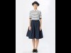 トップスは五分袖のサマーニットで、ネイビーと白×ネイビーボーダーの2種を用意。白やブラックストライプなど3種から選べる「つけ襟」で遊び心を取り入れた。膝下丈のスカートはタフタ素材で、中にチュール素材を使うことで「ふんわり感」を出した。色はネイビー。同ブランドが今季提案する「ニューモードストリート」を取り入れ「新鮮さ」「かわいらしさ」を表現したという。