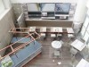 店舗機能の強化を図り、「FOOD&Fab」をコンセプトにリニューアル。店舗面積は現在の約90平方メートルから約175平方メートルに拡張。カフェカウンター、Fabエリアに加えて、キッチン&イベントスペースエリアを増床し、Fabエリアとキッチン&イベントスペースは壁に穴を開けて空間をつなげる。キッチン&イベントスペースの木製品には飛騨の国産木材を使い、エリア中央にはオープンキッチンを設置。壁面には65インチのモニター6台を並べたマルチディスプレーウオールを作る。