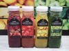オーダーを受けてから作る飲料は4種類。カットしたセロリやキウイに小松菜やレモンなどのジュースを注ぐ「Green Mix」、カットしたグレープフルーツやパインに2種類のニンジンなどのジュースを注ぐ「Yellow Mix」、カットしたブドウやすりつぶしたビーツにイチゴやリンゴなどのジュースを注ぐ「Purple Mix」など。価格は各480円。コンビニエンスストアなどで販売する商品とは一部異なる。