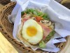 使う野菜は国産で、ライスサンドは全種類1個300キロカロリー以下と低カロリーにもこだわる。「おすすめ」メニューは、マッシュルーム・シメジ・エノキタケのソテーを挟む「きのこタマゴ」(550円)。きんぴら入りの和風サンド「きんぴらタマゴ」、納豆が入る「納豆タマゴ」(以上500円)など7種類を定番で用意。今後は季節の食材を挟むメニュー3種類も展開予定。全種類にレタス・スライスオニオン・カクギリトマトなどの野菜、目玉焼きをトッピングし、ライスシートにはのりのつくだ煮と「はなまるうどん」で使うしょうゆを合わせた和風だれを塗る。具材の追加(100円)や目玉焼き抜き(50円引き)にも対応する。