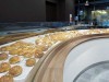 店舗面積は約42坪。店内は同店の看板メニュー「エスカルゴ」をイメージし、曲線を描いたようなデザインに仕上げている。店内外からはガラス越しに、生地を形成したり焼き上げたりする工程を見られるのが特徴。2階にはキッチンを併設している。