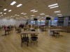 同社の「『働く』を通して人々に笑顔を」という理念にちなみ「笑顔を研究する場所」という意味を込めて、オフィス全体を「ラボ」と位置付ける。メーンフロアのエントランスには社員やクラウドワーカー、クライアントの写真などを展示。その奥に、新しいオフィスの最大の特徴である「ミックスラボ」と呼ぶ空間を開設。約200人を収容可能で、窓際には土足禁止の小上がりも用意。食事をしたり簡単な打ち合わせをしたりすることもできるほか、可動式のカフェカウンターを設置し、社内の懇親会やユーザーとの交流会など会社内外の人がコミュニケーションを取る場にしていくという。
