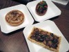 タルトは定番9種類と2カ月ごとに替わるシーズナル3種類の12種類を常時用意。ローストしたタマネギが入ったマッシュポテトをベースにあめ色に炒めたタマネギをのせる「炒めたまねぎ」(486円)や、レンズ豆をベースにオリーブオイルとハーブでコンフィした豚バラ肉などをのせる「豚バラコンフィ&ローズマリーポテト」、トマトとサフランをベースにエビやムール貝などをトッピングする「パエリャ」(以上540円)など。