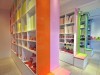 1号店で本店となる同店。当初から、ショッピングエリアであることや情報発信力などを理由に同エリアでの出店を決めていたという。店舗面積は69.83平方メートル。店舗デザインは「図書館」をコンセプトに、店内には本棚を模した什器を設置。色別で商品を陳列しながらも、全色棚の同じ場所に商品を並べているため、筒抜けになっている什器からは同じ商品全色が見えるようになっている。レジやストックはバックヤードに備えているため店頭に置くのは各商品1点ずつが基本で、しおりをイメージした商品カードをスタッフに渡すと商品が買える。