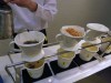 提供するのは、「カレーメシ」(3種類)に湯ではなくコーヒーやジャスミン茶などをドリッパーで注ぐもの。組み合わせは、玉ネギを使った甘味のある「ビーフ」=ジャスミン茶やコーヒーなど、ローレルやタイムに白身魚をベースにした「シーフード」=かつお節やアップル紅茶など、ターメリックやジンジャーなどを使った「スパイシーチキン」=唐辛子やメープルシュガーなど、各5種類全15種類を用意する。辛さはビーフとシーフードが中辛、スパイシーチキンは辛口で、1杯がおにぎり約2個分に当たるという。価格は一律290円。