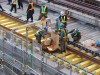 工事に当たり4日夜間から明治通りと駅東口バスロータリーの一部を車線規制し、大型クレーンを線路沿いに設置。「サードレール」と呼ぶ走行用レールと並行して敷設している給電用レールなどの撤去、使わなくなったレールの切断などを行った後、大型クレーン2基を使って新しい橋梁や黄色の枕木、新しいレールを搬入・設置していった。