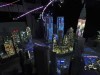 今回は、同社の名前が広く知れ渡るきっかけとなった2012年の東京駅舎への3Dプロジェクションマッピング「TOKYO HIKARI VISION」の再現を中心に都市を表現。会場入り口近くは新宿エリアで、繁華街のネオンサインをイメージしたパネルを天井からつり下げ、都庁やNTTドコモ代々木ビル(ドコモタワー)などのビル群を模型で再現した。