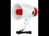 「メガホンヤク」は、案内したい内容を事前に端末に登録しておくことで、状況に応じて多言語音声で案内できるサービス。端末上部に付いたタッチパネルか音声照合機能で案内したい内容を選ぶと各言語で再生される。従来の拡声器の機能も備えているが、駅員が話した言葉を翻訳する機能はない。