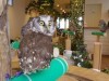 店舗面積は26坪。「イングリッシュガーデン」をコンセプトにした店内は、白を基調にした空間にグリーンを飾り、床にはレンガ調の石畳も配置。ガラス張りのファサード近くには流木を組み合わせたシンボルツリーを設置した。店内さまざまな場所にホコ(フクロウたちが止まる場所)を用意して飼育。店内は22〜25度に調整しているが、寒帯地に生息するカラフトフクロウ(トール)には霧吹きで水をかけるなど、種類によって配慮しているという。