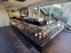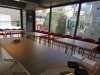 20〜40代の女性をコアターゲットに、「トレンドの発信地」であることや「カフェ文化が根付いている」ことから表参道エリアを出店地に選んだ。店舗面積は2フロア計約50坪。3面ガラス張りの物件で、1階は黒を基調に、ショーケース内の色とりどりのスイーツが映えるようにデザイン。床には、バルセロナのパセオ・デ・グラシア通りの敷石に使われている建築家アントニオ・ガウディがデザインした六角タイルを採用。2階は木目を基調に赤色の椅子でアクセントを加えている。1階はテークアウトとイートインスペースを併設。2階はカフェレストラン。席数は38席を用意する。