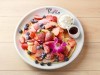 ランチには、パンケーキやワッフルなどのスイーツメニュー、エッグベネディクトやケサディーヤなどの軽食をラインアップ。ディナーメニューにも注力し、夜は、肉料理やハワイアンカレー、ハワイアンカクテルなどのアルコールも提供する。
