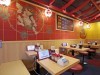 店舗面積は約33坪。席数はカウンター16席、テーブル11席の計27席。店舗は、かつて「寺の参道で唐辛子が売られていた」ことにちなみ、「寺」をコンセプトにデザイン。窓を広く取ったファサードのフレームや椅子など随所に赤を取り入れている。テーブル席エリアの壁面には風神と雷神の絵を掲出し、カウンター席上部にはちょうちんを使った装飾を施した。