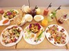 2階のカフェ(TEL 03-5766-3778)は32席を用意。メニューは、チキンやアボカド、ベイクドポテトなどの「パワー」、豆腐やブロッコリー、マッシュルームなどの「トーフ」など4種類のサラダセット(サラダ・スープ・ミニサイズのスムージー・パン付き、各1,800円)や、ケイジャンカジキマグロをのせるオープントースト(950円)、スムージー(1,300円)、レモンを入れたグラスに注ぐと青色から紫色に替わるハーブティー「バタフライピー」(700円)などをラインアップする。客単価は2,000円前後。
