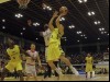 試合は山内盛久選手の3Pで先制するも、千葉の得意とする切り替えの早いオフェンスから連続得点を許し一時11点差を付けられたが、満原優樹選手とベンドラメ礼生選手の3P2本を含む連続得点で23対21とリード。第2Qは60%を超す高確率でシュートが決まったことに加え、後半約4分間、千葉を無得点に抑えるディフェンスで46対37とリードを広げることに成功した。