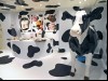 人の多さや若年層へのアプローチも考え渋谷に出店。店舗内外ともに牛柄のデザインで仕上げた。店頭のモニターではコマーシャルや生産者の声などを上映するほか、2階には乳しぼりの疑似体験ができる牛の等身大オブジェを設置。牛柄のオリジナルフォトフレームで写真を撮ることもできる。飲食スペースは無く、テークアウト専門となる。