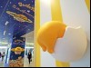 「ぐでたまストリート」と銘打ち展開する同企画。コンコースの天井や柱には同キャラクター5周年のテーマとして掲げる「宇宙」をイメージした装飾をあしらい、柱6本には3Dの「ぐでたま」10体を設置。「ぐでたま」は、卵の殻から「祝5周年」の幕が垂れているものや眼鏡や帽子を着けた服装の柔らかい素材でできたもの、尻を向けて寝転がっている格好のプニプニした素材のものなど、5種類を作った。