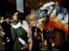 昼の時間帯に突如現れた全長5メートルのユタラプトル2体。親子連れに甘えたり、レンジャー隊の肩に頭をのせて居眠りをしたり穏やかな表情を見せたほか、うめき声を上げて尻尾を振り回して暴れたり、人の頭にかみついたりと肉食恐竜ならではの姿も見せた。集まったランチ帰りのビジネスマンやOLらは驚きの声を上げ、スマートフォンのカメラなどでその姿を撮影して楽しんだ様子だった。