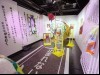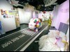 約80点を展示する場内には、これまで作ってきた洋服や描き下ろしを含む絵画、スケッチなど幅広い作品が並ぶ。「たくさんの女の子が牙をむいて地球にかじりついている」壁画は、17日に来場してライブペインティングしたほか、「好きで大きくしたいと思った」ことから制作したハムスターをモチーフにした作品などインスタレーションにも初めて取り組んだ。床は壁に向かってのびる道路を模したデザインに仕上げ、「止まれ」ではなく「止まれない」と記すことで「突き当たっているのに止まれない、突き進む力強さ」を表現した。