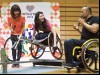 会では、初参加となるモデルの是永瞳さんらが、イベント当日も体験コーナーを設ける競技用車いすのローラーを体験。初体験となった是永さんは「すっごい難しいけど、貴重な体験で楽しかった」と話した。モデルでタレントの鈴木奈々さんは昨年に続き「ノーマライズ駅伝」に出場予定で、「1位になりたい」と高橋さんにコーチングを直談判。高橋さんは「目線をちょっと下げて、5・6メートル先の道路を見て走る」とアドバイスしていた。