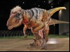 ディノトロニクスは、パイロットと呼ぶ操縦者が装着して操作。軽くて強度の高い「ドライカーボン」などを使うことで軽量化を図っているほか、小型カメラや無線を搭載することでパイロットは外部の様子を把握できるようにしているという。内部の設計はバージョン3で、ユタラプトルは首など、動かす機構がこれまでとは異なり「よりリアルに動かせる」ようになっているほか、他の恐竜も前回はできなかった恐竜同士がかみつく演出もできるようになったという。