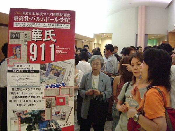 映画「華氏911」−先行上映される恵比寿ガーデンシネマで前夜祭オールナイトが14日午前零時から上映された