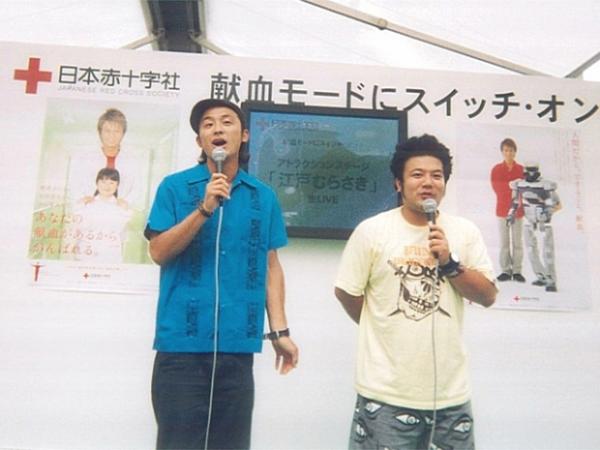 2日、渋谷に3カ所ある献血ルームのPRイベントが109前で開催。写真は「江戸むらさき」による生ライブコント
