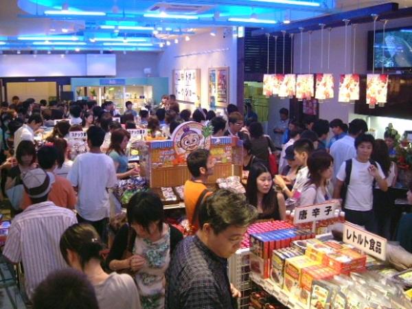 スペイン坂にオープンした沖縄物産店の店内。山咲トオル氏が1日店長を務めた11日も終日賑わいを見せた