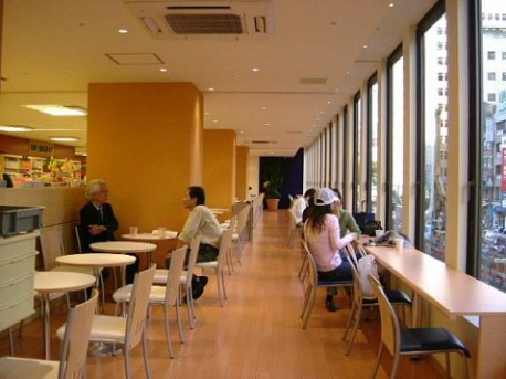 大型書店「文教堂」の中にオープンした「モトヤエクスプレス」の店内。明治通りに沿った細長い店内は穴場の感も