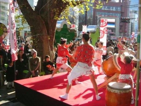 1〜2日、ラフォーレ原宿のエントランスで湯島天神太鼓のライブ演奏が。ライブイベント「Wart Garden」は10日まで