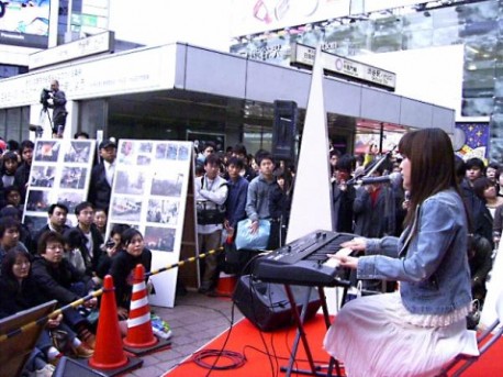 30日午後、多くの観衆が見守る中、渋谷ハチ公前広場で川嶋あいさんが「1・000回目」の路上ライブを達成